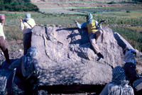 Jordan. Iraq al-Amir, Paul Lapp and workers at tumble of blocks