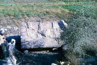 Jordan. Iraq al-Amir, lion outline on block turned over at north end of Qasr al-Abd