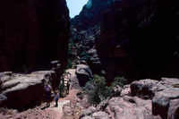 Jordan. Petra, Khaznet Far'oun (Treasury) from Siq