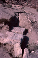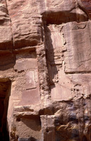 Jordan. Petra, Remains of stucco on walls of rock-cut houses on el Habis