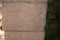 Jordan. Tafilah, Buseira, "Recycled" Greek Inscription, turned upside down, on an arch of an Ottoman Building at Busayra