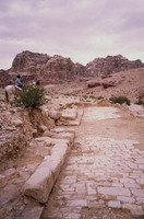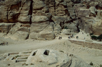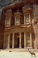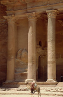 Jordan. Petra, Khaznet Far'oun (Treasury), lower order, north (right) man with camel