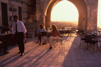 Jordan. Umm Qais, Colonnade street near circular house/gate