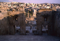 Jordan. Jerash, The inner, staircase, façade of the Artemis Propylaeum