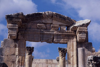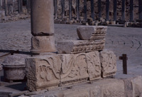 Jordan. Jerash, Corinthian columns heads, Temple of Artemis