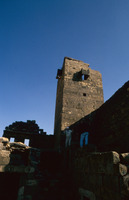 Jordan. Mafraq, Umm al-Jimal, covered resavoir next to tower