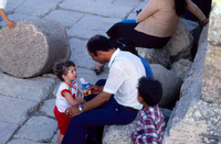 Jordan. Jerash, Festival, family having refreshment break
