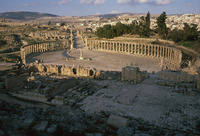 Jordan. Jerash, The Fountain Court with the ruins of the Cathedral