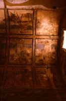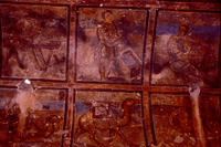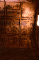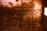Jordan. Qusayr Amra, general view of the vault of the left bay, with artisan scenes. On the upper part, the decorative arrangement of the soffit of the arch which leads into this aisle may be observed, with the female figures holding a medallion