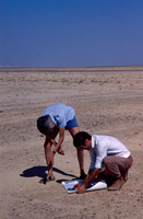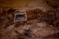 Jordan. Qusayr Amra, alongside a tightly packed group of onagers , a witness may be seen with the state of the paintings before cleaning