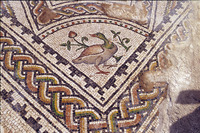 Qastal, mosaic of duck from lion/bull scene, Umayyad, eighth century