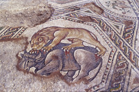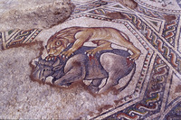 Qastal, mosaic of lion attacking bull, Umayyad, eighth century