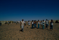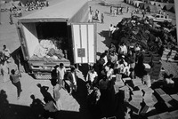 Mercy Camp, Evacuee Camp. unloading water tanks