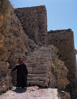 Jordan. Karak Crusader Castle, 12th, old man on steps