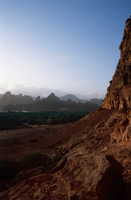 Saudi Arabia. Khuraybeh (Dedan) al-Ula view from Lion Tombs to mountains