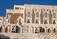 Yemen. Sana'a, house façade west of Bayt al-Jadid