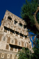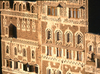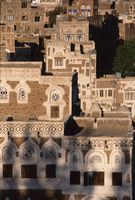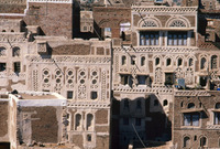 Yemen. Sana'a, house façades, from Samsarat Mansura