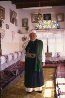 Yemen. Sana'a, Sheikh in sayyid's black robe, sleeves down for mosque