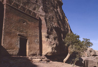 Petra, Tomb 826, vestiges of Nabataean plaster on façade