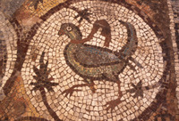 Petra, mosaic of dove and scarf north aisle, Byzantine church, sixth century AD