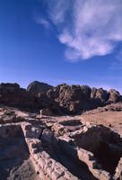 Petra, house on ez Zantur, Qasr al-Bint behind