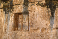 Petra, Qattar ad-Deir, linked water tanks and Dushara block with engraved cross
