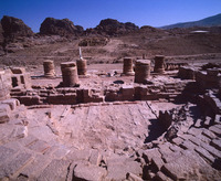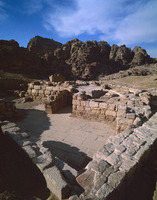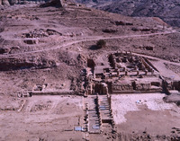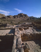Petra, house on ez Zantur, Qasr al-Bint behind