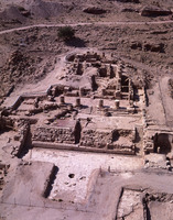 Petra basin from Jabal al-Khubtha to Qasr al-Bint, over mountains. to Wadi Araba