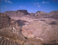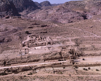 Petra basin from al-Khubtha (include back of Palace Tomb) to Qasr al-Bint and mountains behind