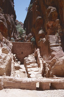 Petra, Siq new dam in Wadi al-Qantara and steps to shrine