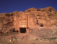 Petra, Arched Gate, Temple of Winged Lions, Qasr al-Bint, Umm Al-Biyara in backgorund
