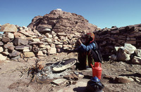 Petra, Jabal Haroun, Bedouin woman from Wadi Araba making bread