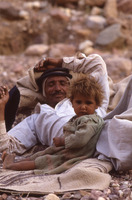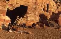 Petra, Bdoul bedouin gril outside tomb home at Mughar an-Nasara
