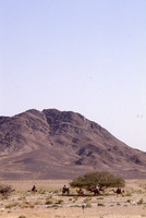 Camel trek, acacia tortilis in Wadi Salman