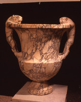 Jordan. Petra, The Petra Archaeological Museum, marbel vase with lion handles found in Byzantine church