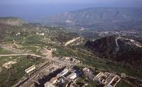 Umm Qeis, colonnaded courtyard and Lake Tiberias