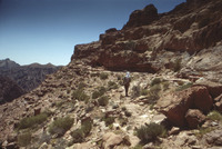Jordan. Petra, Sa'ud walking to Dakhilallah Qublan's house in Wadi Marwan site H-2