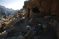 Jordan. Petra, site H-2, Dakhilallah Qublan's house, tea on the way