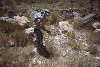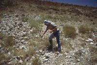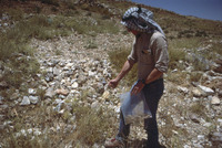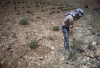 Jordan. Petra, Steve Simms experimentally collecting wild grasses on plateau above Petra, just north of turnoff to el-Hai