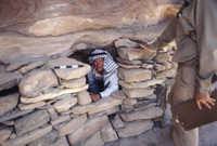 Jordan. Petra, storage structure S-1, Steve Simms looking out, Ron Holt standing