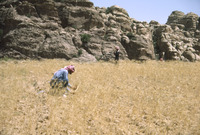 Jordan. Petra, Kenneth Russell collecting wheat sample #6 north of Petra