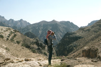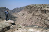 Jordan. Petra, Kenneth Russell taking picture from south rim of Wadi Marwan