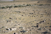 Jordan. Petra, stone circle with quern lense cap on quern for scale, waterfall site, Wadi Judaiyid
