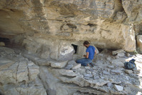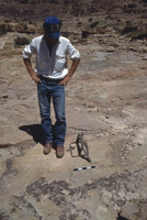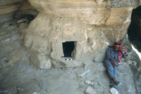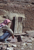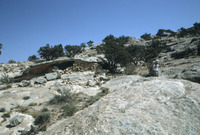 Jordan. Petra, remote storage unit, Sa'ads site, 88-28, overview with Monson (Bill) Shaver poluting at shelter
