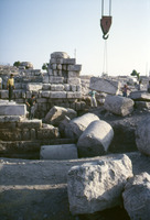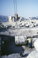 Jordan. Amman, Citadel (Jabal al-Qala'a), Temple of Hercules, moving capital of southeast column collapse