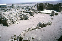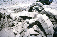 Jordan. Umm ar-Rasas, outside north wall of church with northward earthquake collapse