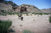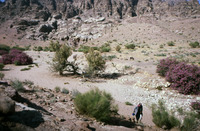 Jordan. Petra, helicopter flight with Jane Taylor down to Wadi Sabra, Jane Taylor and Bdoul guide