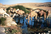 Jordan. El-Lejjun, camel at 'Ain el-Lejjun, behind Roman dam (now 4 meters under new roadbed)