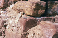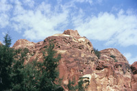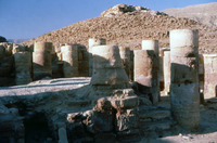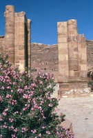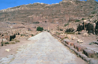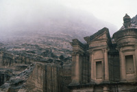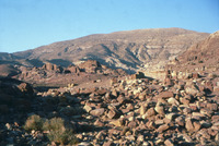 Jordan. Petra, view towards High Place, note 'fort' on peak