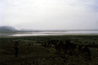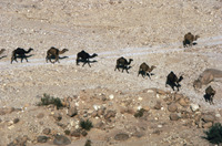 Jordan. Numeira, camels headed for water